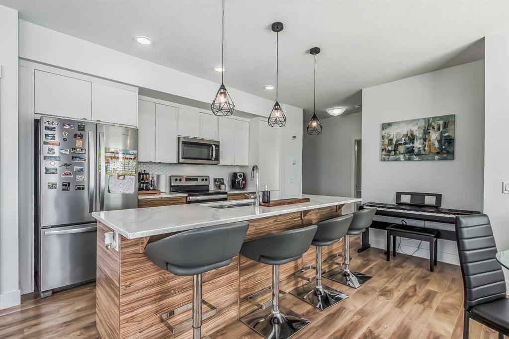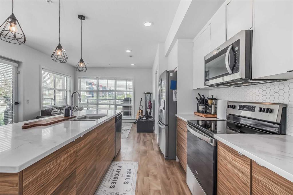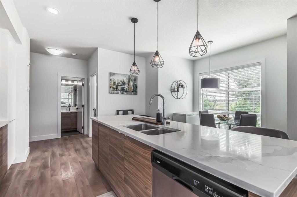 Welcome to this stunning end-unit ground floor apartment featuring 9-foot ceilings in the vibrant community of Seton. Perfectly situated in a premium location, this home offers breathtaking mountain views to the West and peaceful park views to the North. Inside, you’ll find wall-to-wall windows that fill the space with natural light, creating an inviting and airy atmosphere. The open and functional floor plan showcases a modern kitchen with a large peninsula breakfast bar island, quartz countertops, stainle...