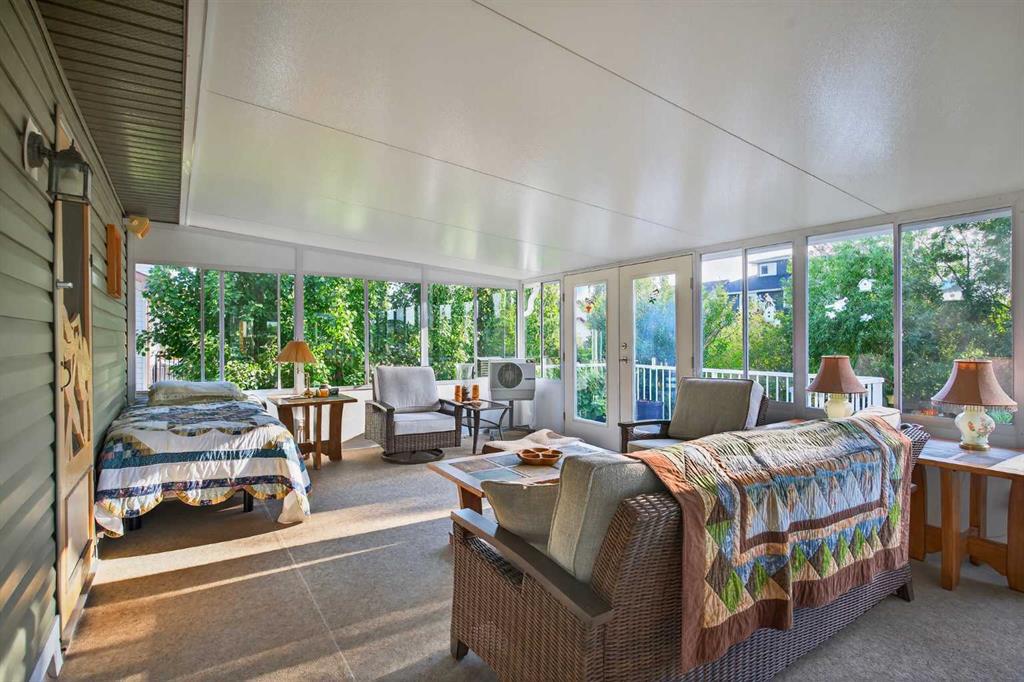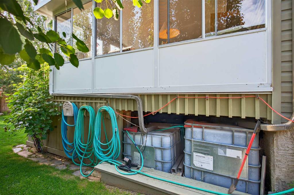125 Copeland Close, Langdon - where space, sunshine, and small-town charm come to meet. Loved by the same family since they had it built, this 1523 sq ft bungalow is set on a massive, beautifully landscaped, sunshine lot that's ready for year-round gatherings. Imagine morning coffee on a large front porch and relaxing in the evenings in one of two, large, 3 season sun rooms. Enjoy grilling on a natural gas BBQ (included),or gathering round a fire pit on a 23 ft circular cement pad. Two 1,000 litre rain coll...