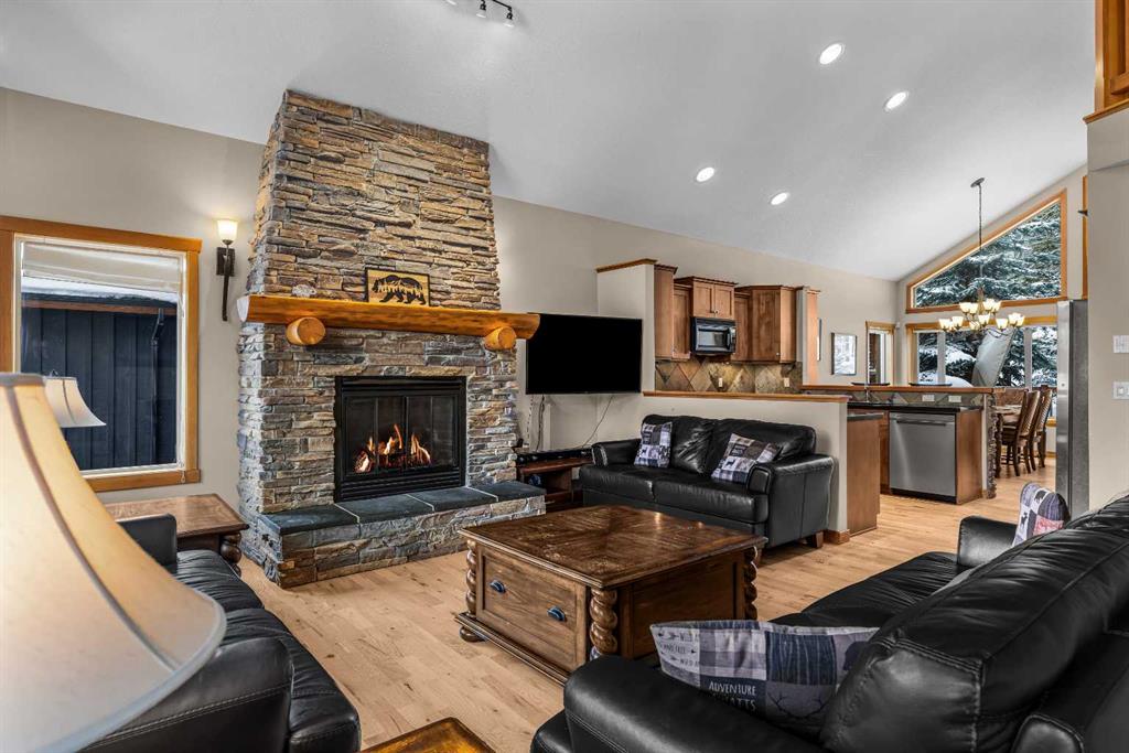 Situated in the picturesque Three Sister Mountain Village, this semi-detached home presents a spacious layout with four bedrooms and four bathrooms, including two primary bedrooms, offering over 2500sqft of space and privacy ideal for a family or multiple guests. Nestled on a tranquil mountain street, residents are treated to the serene beauty of the surrounding landscape through generous large windows and open spaces that frame breathtaking mountain views. The home is in immaculate shape, featuring hardwoo...