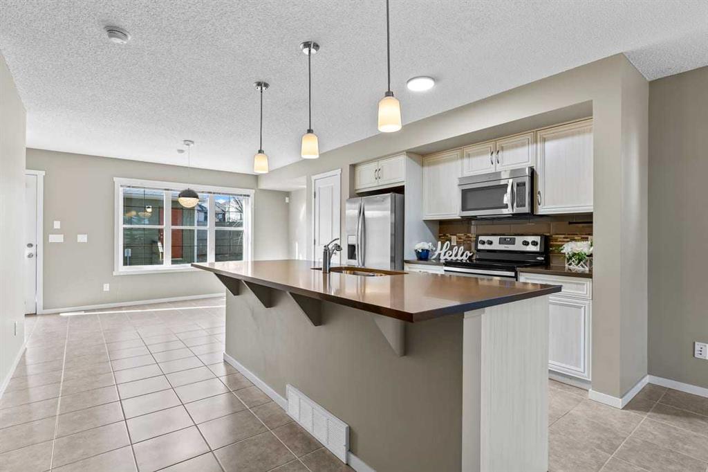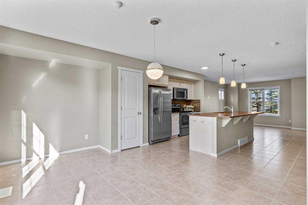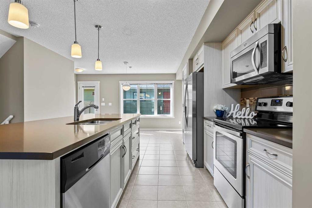 WELCOME TO THIS BEAUTIFUL END-UNIT TOWNHOUSE WITH DOUBLE GARAGE OFFERING OVER 2000 SQ.FT OF DEVELOPED LIVING SPACE in the DESIRABLE LAKE COMMUNITY OF MAHOGANY. This SPACIOUS 3 BEDROOM, 2.5 BATHROOM HOME is perfect for families or those seeking extra room to grow. The main floor features a BRIGHT OPEN-CONCEPT LAYOUT with durable TILE FLOORING throughout, creating a seamless and modern living space ideal for both everyday living and entertaining. The kitchen is the heart of the home, complete with a LARGE IS...