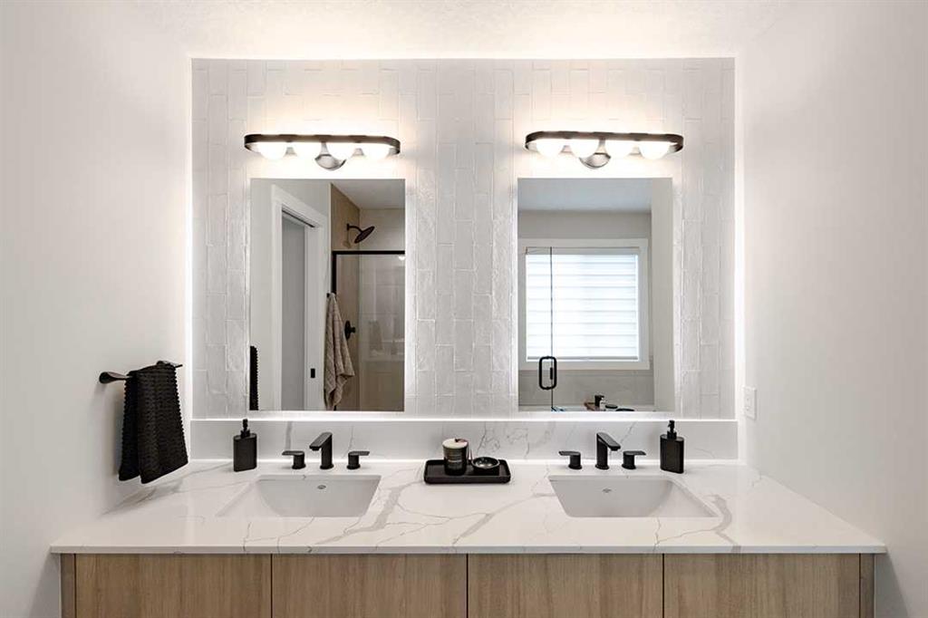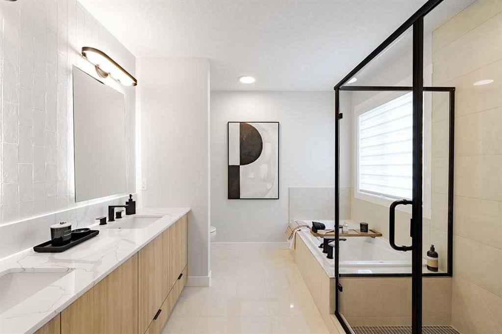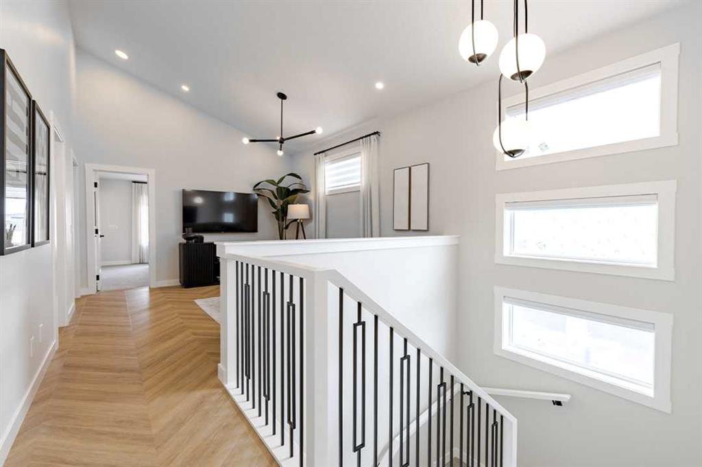 Welcome to the Katalina by Shane Homes, a pre construction front-drive home with a double attached garage located in the community of Rose Ranch. The main floor features a full bedroom and full bathroom with shower, ideal for guests. The open-concept layout includes a living room with electric fireplace, dining nook, and a kitchen with island seating and a walk-in pantry. Upstairs offers three bedrooms, including the primary bedroom with dual vanity ensuite, soaker tub, separate shower, and walk-in closet. ...