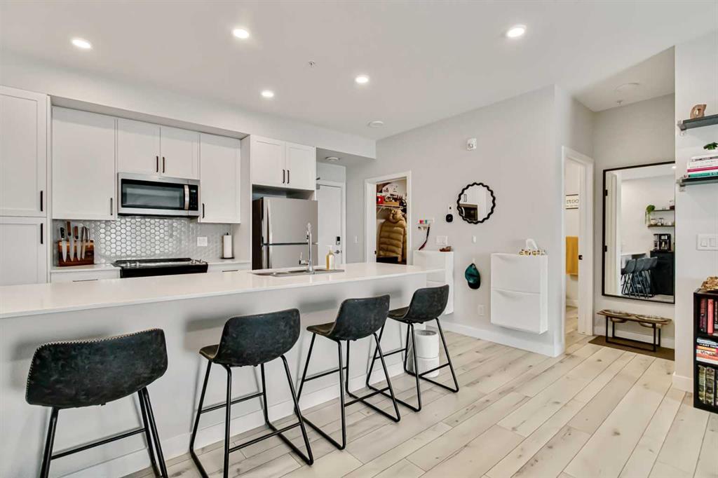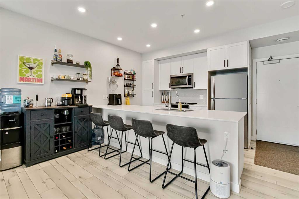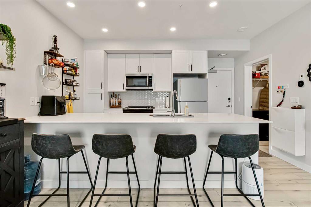 Welcome to this beautifully upgraded second floor unit in Les Jardins by Jayman BUILT, offering the perfect balance of comfort, style and convenience. This popular California split layout features a bright, open concept design with spacious living areas and thoughtfully curated finishes throughout. Step outside to your impressive 8 x 21 ft private balcony - a rare outdoor space that’s perfect for relaxing, entertaining, or enjoying summer evenings. Inside the kitchen is both stylish and functional, comple...