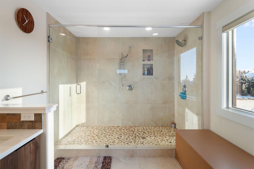 MOUNTAIN VIEWS! Set on 2-acres in prestigious Bearspaw Summit Estates, this remarkable 4659sqft home is refined country living with effortless access to the city. The property is moments from top schools, everyday conveniences, and just a 9-minute drive to Rocky View Co-Op. At the heart of the home, the living room makes a striking first impression with soaring ceilings, expansive picture windows, and a dramatic floor-to-ceiling stone wood-burning fireplace that anchors the space while framing breathtaking...