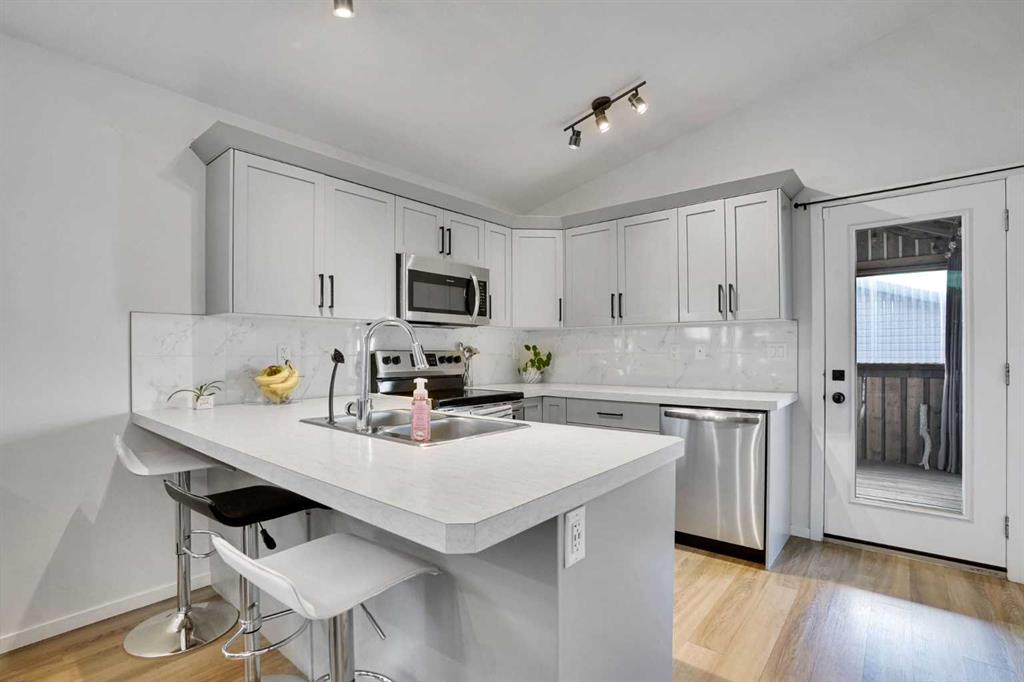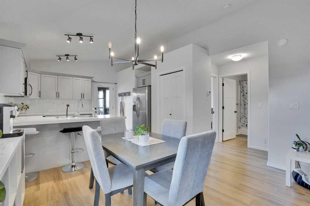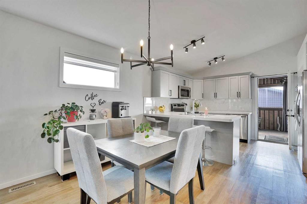 FULLY FINISHED 4 BEDROOM, 3 BATHROOM BI-LEVEL ~ HEATED DETACHED GARAGE ~ WEST FACING BACKYARD ~ Covered front entry welcomes you and leads to a sun filled foyer ~ Open concept main floor layout is complemented by vaulted ceiling and vinyl plank flooring ~ The living room is centred by a cozy fireplace with a mantle above and opens to the dining space where you can easily accommodate large gatherings ~ The U-shaped kitchen offers a functional layout with plenty of white cabinets, ample counter space includin...