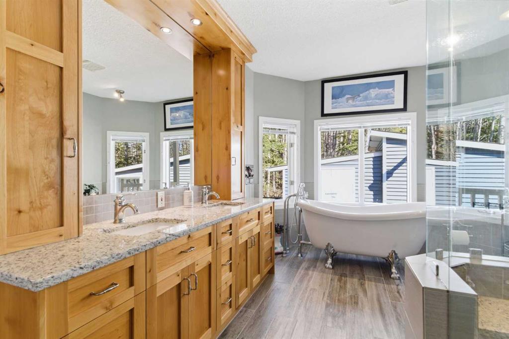 This beautiful Victorian style 1 & ½ storey home was built in 1989 and sits on 20 acres with trees & pasture land. It was updated in 2012 with interlocking metal roof (with transferable 50 year warranty) and Hardy board siding in 2022 on both the house and detached triple garage. The covered deck wraps around most of the house. The large fenced in yard (1 acre) is perfect for keeping young children and dogs close by. This fenced in yard includes a hot tub, pond, green house (c/w power & heat) & garden. The ...