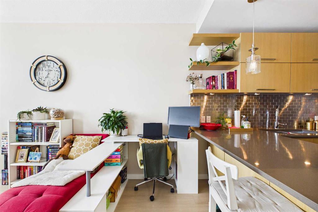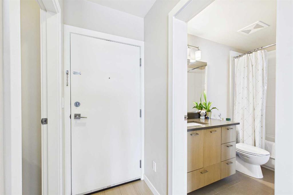 Experience the pinnacle of inner-city living in this stunning one-bedroom, one-bathroom sanctuary located in the prestigious community of Renfrew. Designed for the discerning urbanite, this condo blends contemporary elegance, convenience, sophistication and boasts a perfect view of Calgary’s downtown skyline. Modern Design & Finish with a minimalist vibe. Step into an open-concept layout defined by sleek, contemporary finishes and a sophisticated palette. The chef-inspired kitchen features flat-panel cabine...