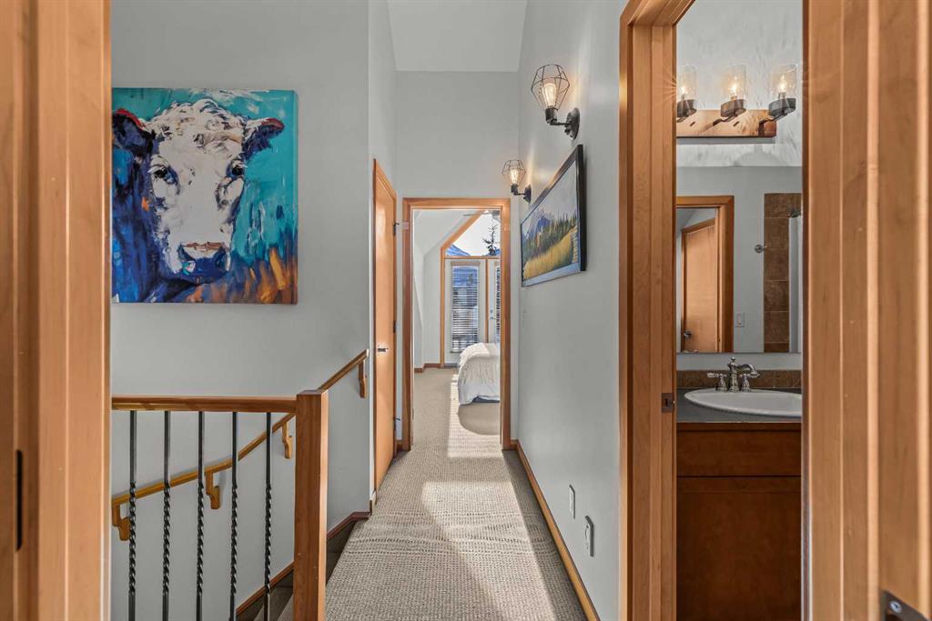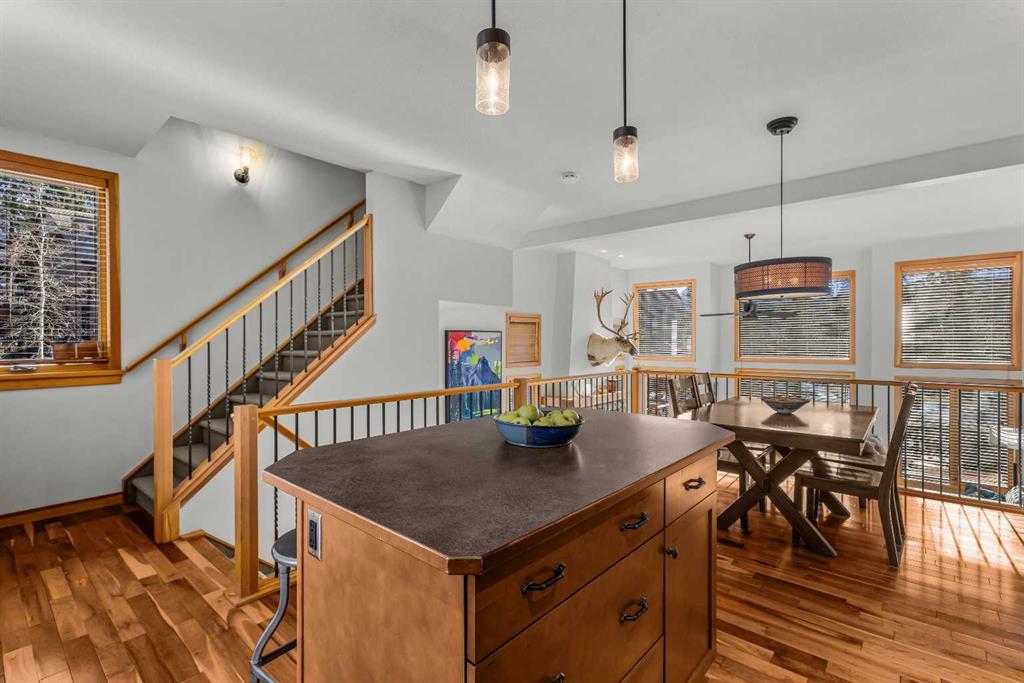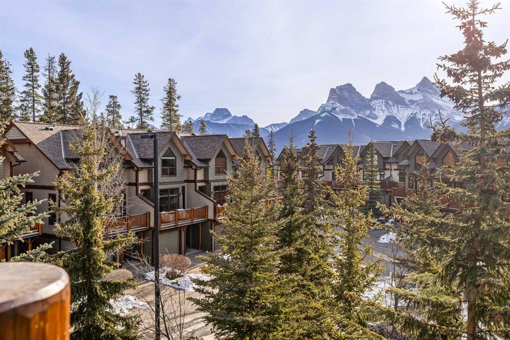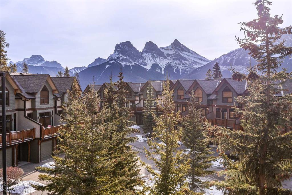 Stunning Corner-Unit 3-Bedroom Townhouse with an Amazing View and just under 2200 Sqft total space! — Canmore Living at Its Finest! Located in the heart of Canmore, this exceptional corner unit delivers the privacy and extra natural light buyers love, along with sweeping, mountain vistas of the iconic Three Sisters. With south-facing exposure for all-day sun, this home is designed to showcase the view from multiple angles and outdoor spaces. Step inside to the warmth of maple hardwood floor a cozy rock fir...