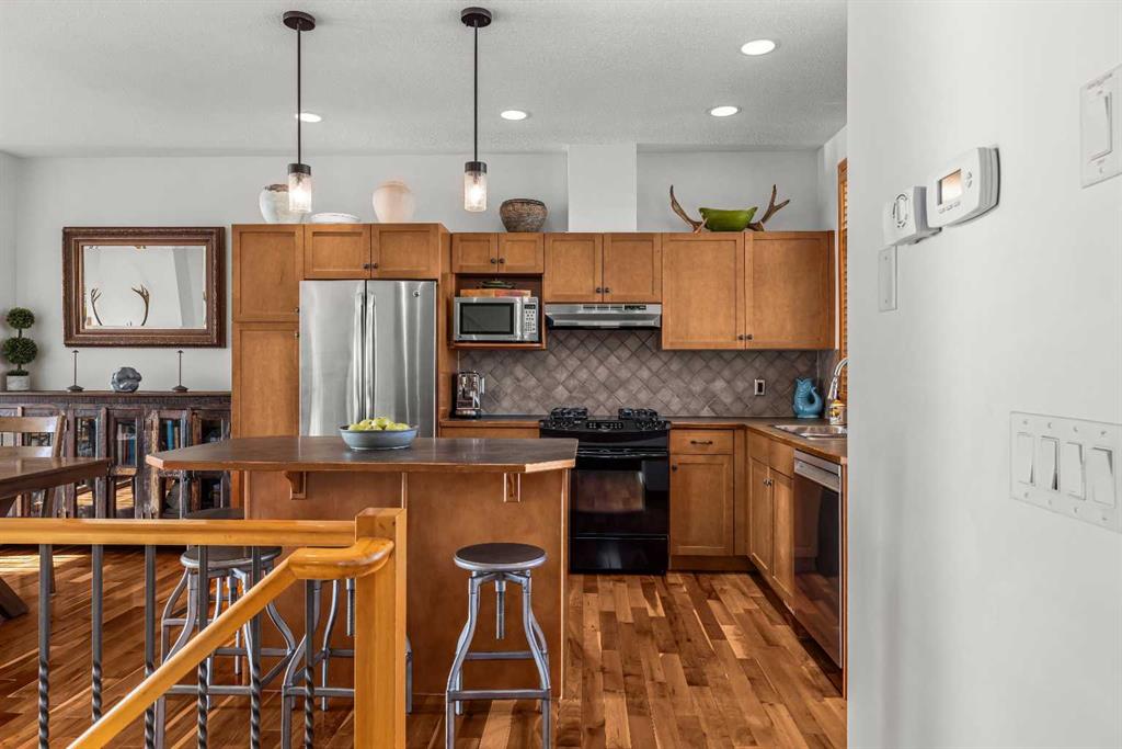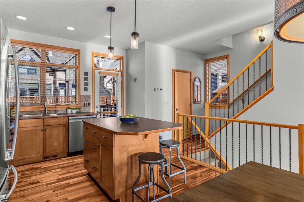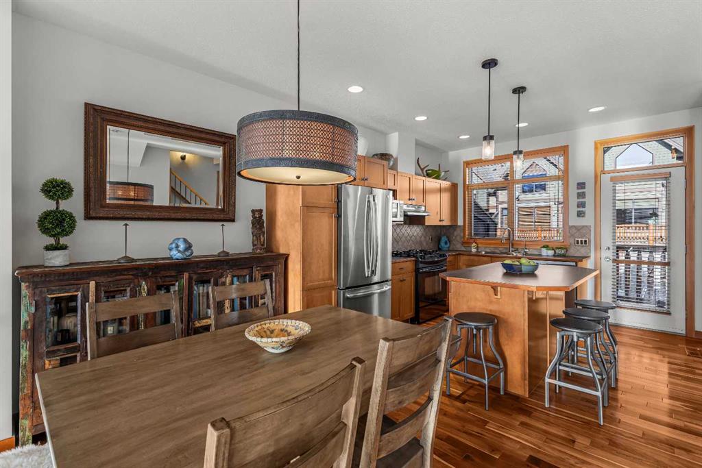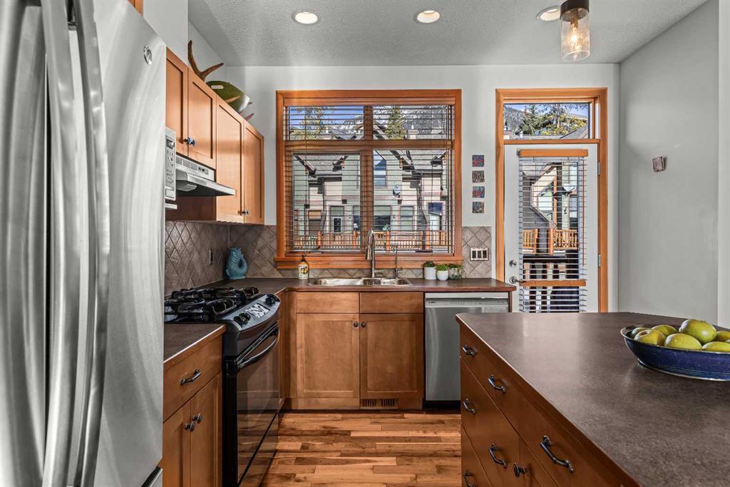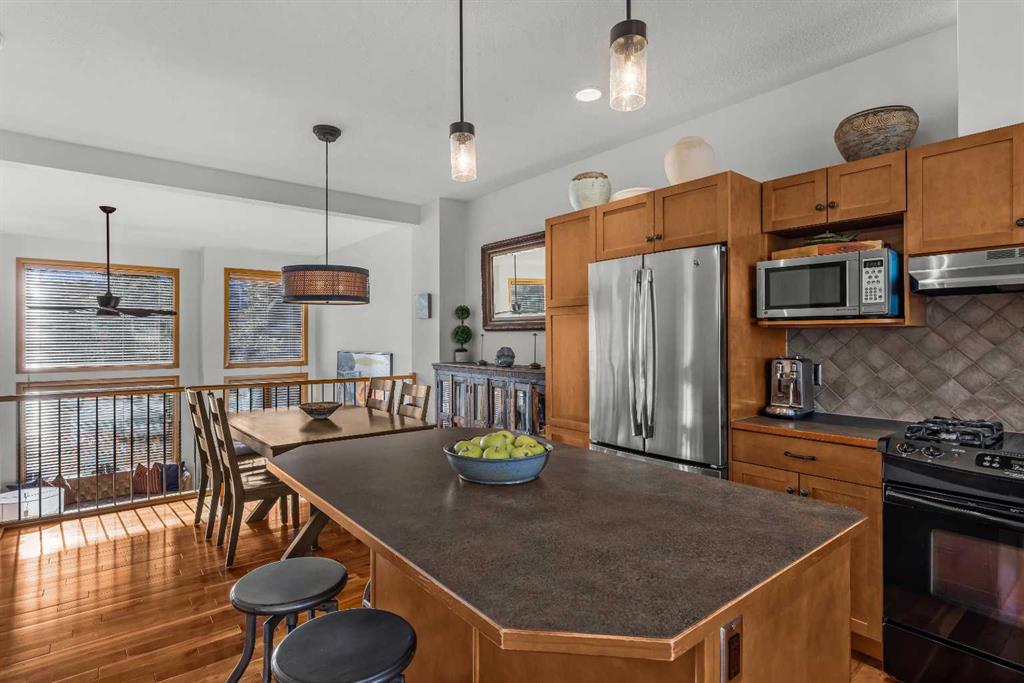 Stunning Corner-Unit 3-Bedroom Townhouse with an Amazing View and just under 2200 Sqft total space! — Canmore Living at Its Finest! Located in the heart of Canmore, this exceptional corner unit delivers the privacy and extra natural light buyers love, along with sweeping, mountain vistas of the iconic Three Sisters. With south-facing exposure for all-day sun, this home is designed to showcase the view from multiple angles and outdoor spaces. Step inside to the warmth of maple hardwood floor a cozy rock fir...