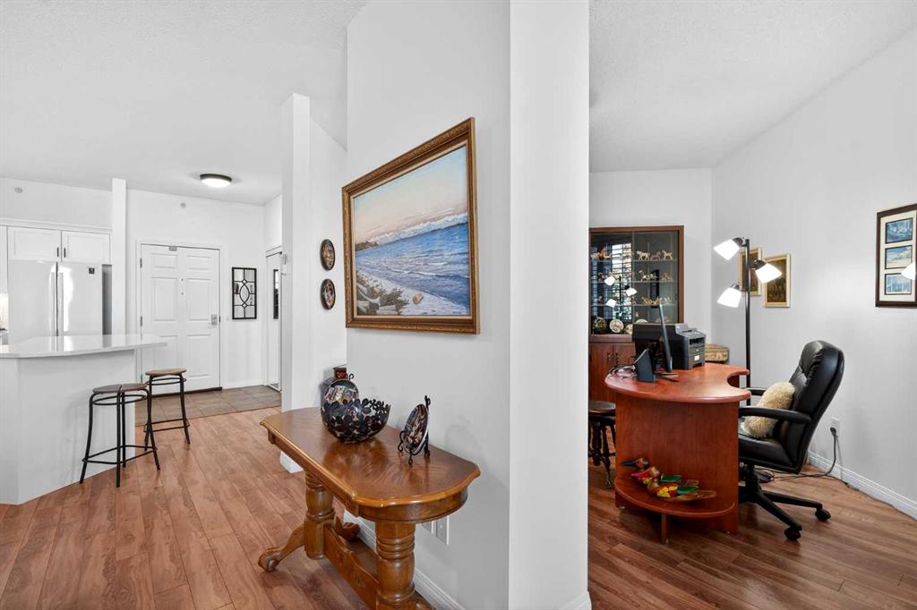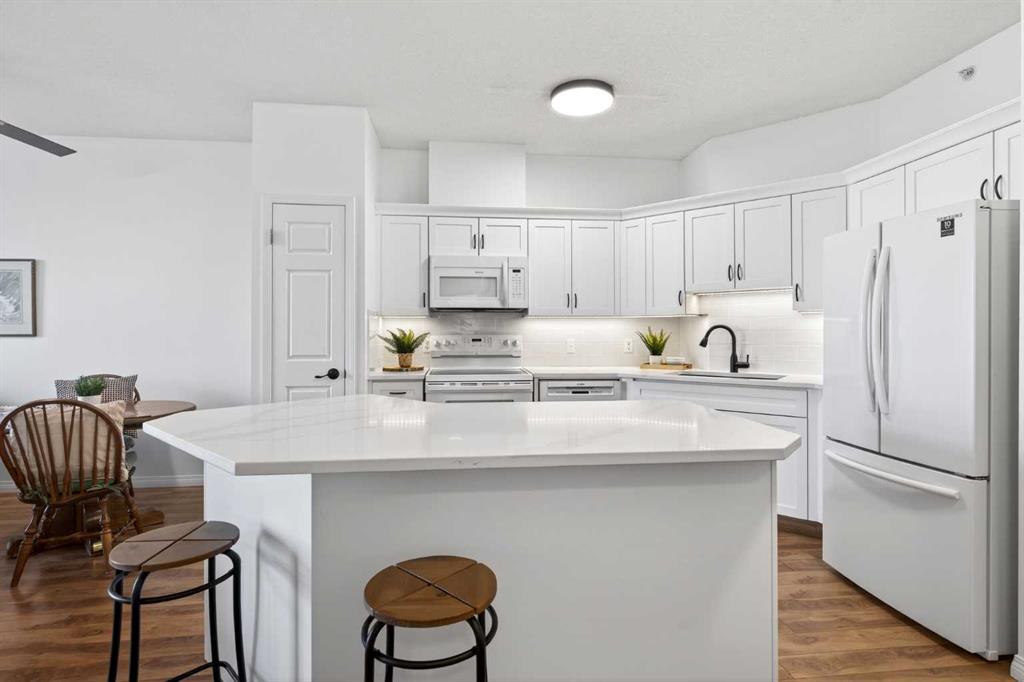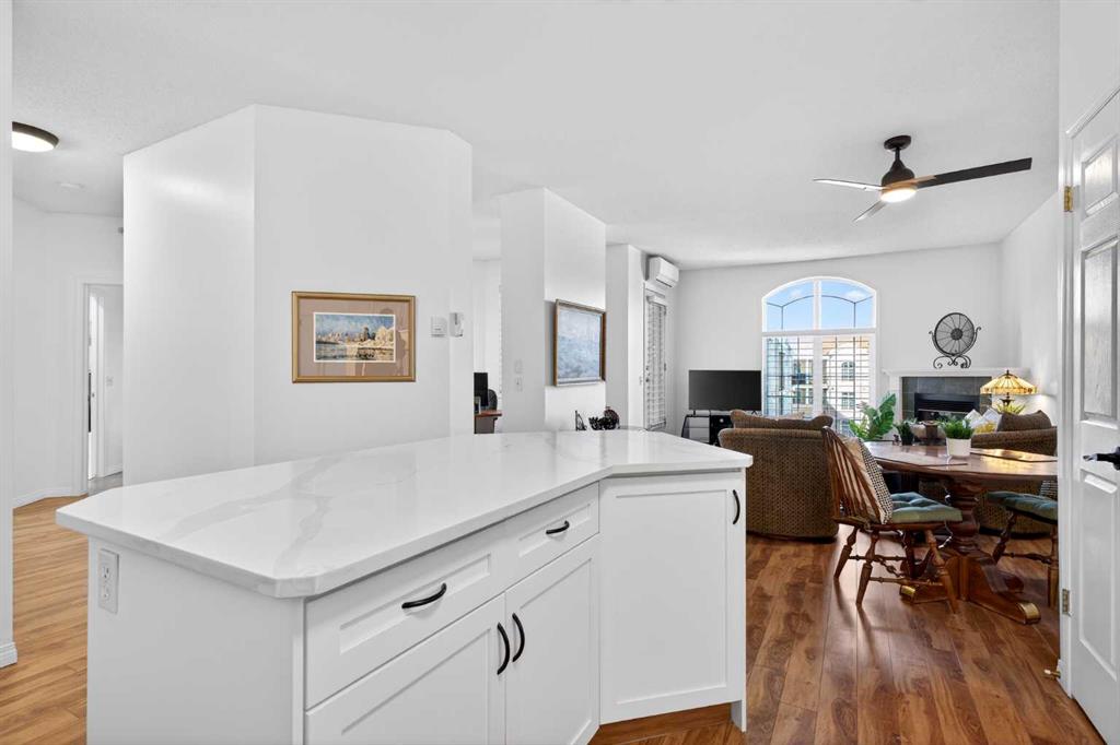 Welcome to the highly sought-after Phoenician in Dalhousie. This immaculately maintained unit features a PROFESSIONALLY RENOVATED KITCHEN with upgraded quartz countertops, under-cabinet lighting, and an abundance of prep space. The oversized island offers seating for three, making it perfect for casual dining or entertaining. The open-concept living and dining area are both functional and flexible, anchored by a cozy gas fireplace and large windows to let that West sun in! A dedicated office provides excell...