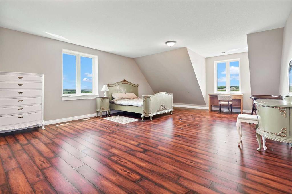 Executive 2 Storey Home with Quad Attached Garage & Huge Shop on 4.99 Acres! Impressive 5,000+ s.f. energy efficient 2 storey home built on a poured concrete slab with in-floor heating by on demand boiler, with 13" ICF walls throughout, triple glazed PVC windows and Acrylic Stucco Finish. Entering the grand foyer, a flood of natural light highlights the coloured concrete flooring, 10' ceilings, a chef's dream kitchen with upgraded cabinets, quartz countertops built in high-end appliances, new microwave, n...