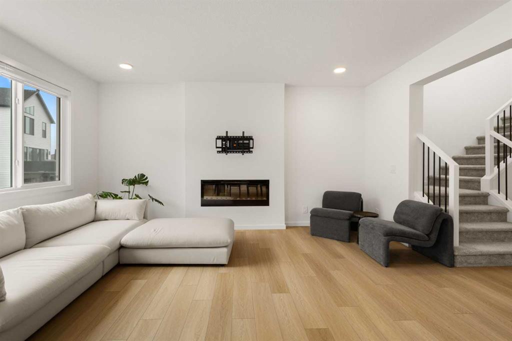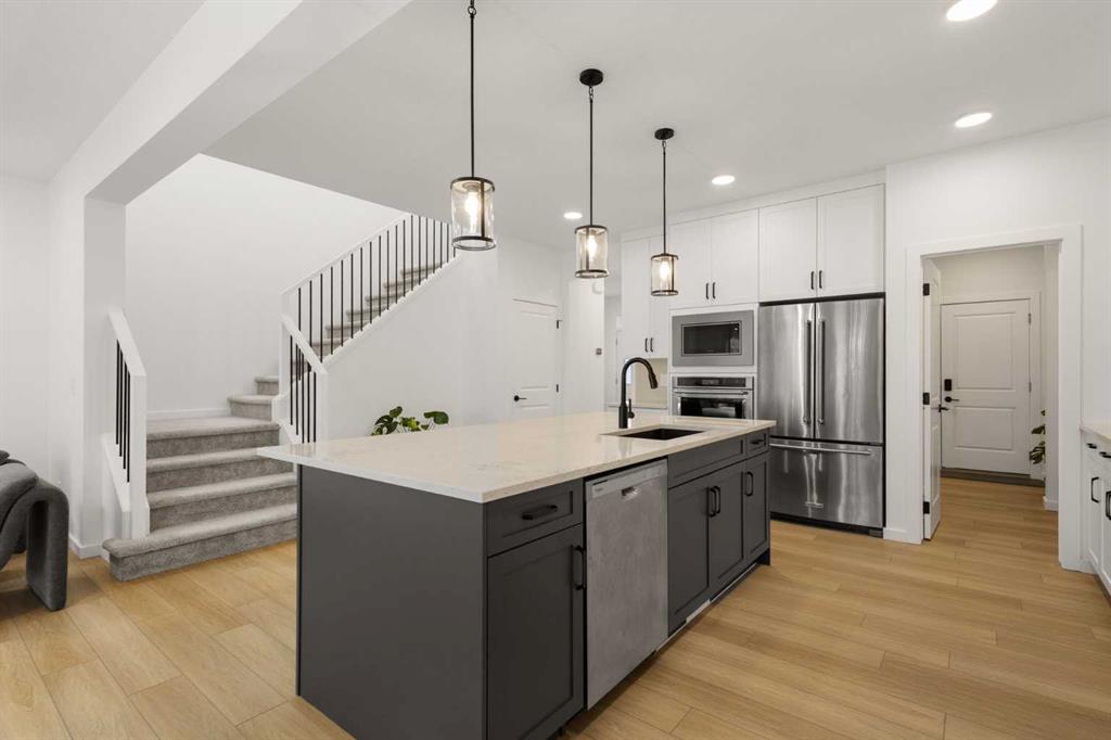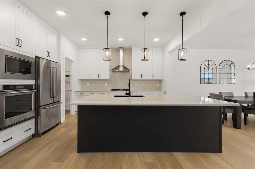 Welcome to 50 Royston Terrace NW in Rockland Park, a 2024-built home offering a clean modern design, thoughtful functionality, and a bright, open main floor layout. The kitchen is a true focal point of the home, featuring a large central island with an expansive quartz countertop, offering excellent prep space, storage, and casual seating potential. The space is further enhanced by two-tone cabinetry, stainless steel appliances, built-in microwave and wall oven, gas cooktop, chimney-style hood fan, walk-in ...
