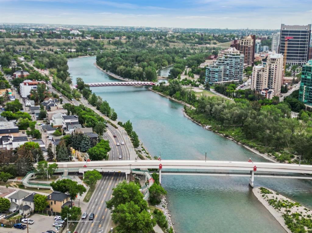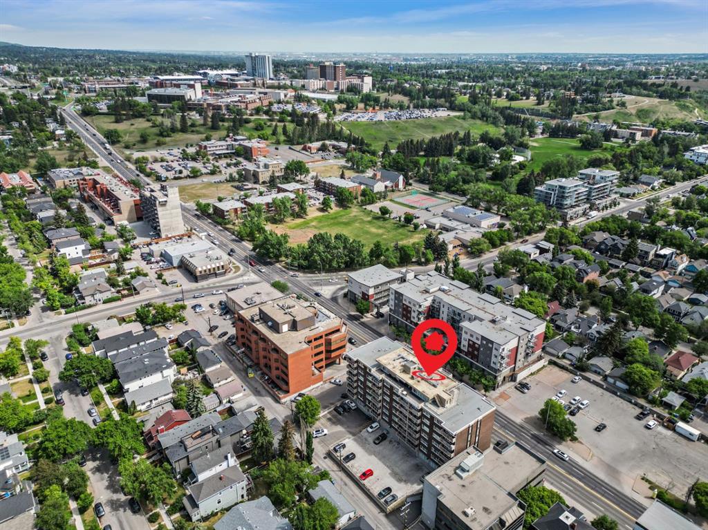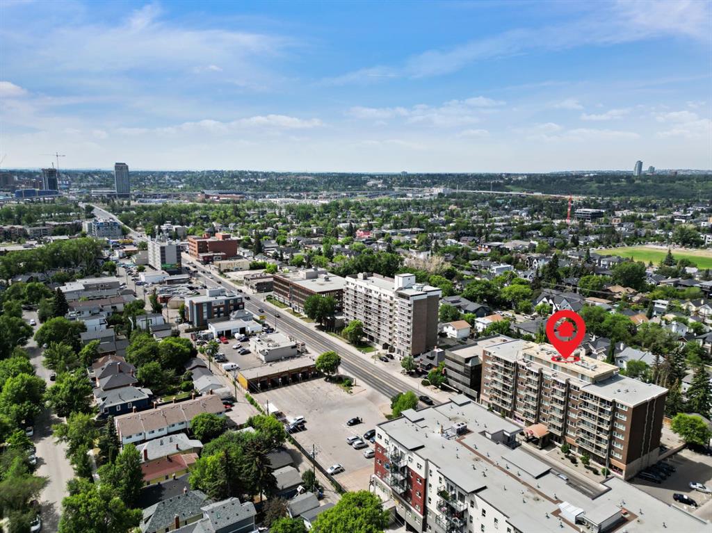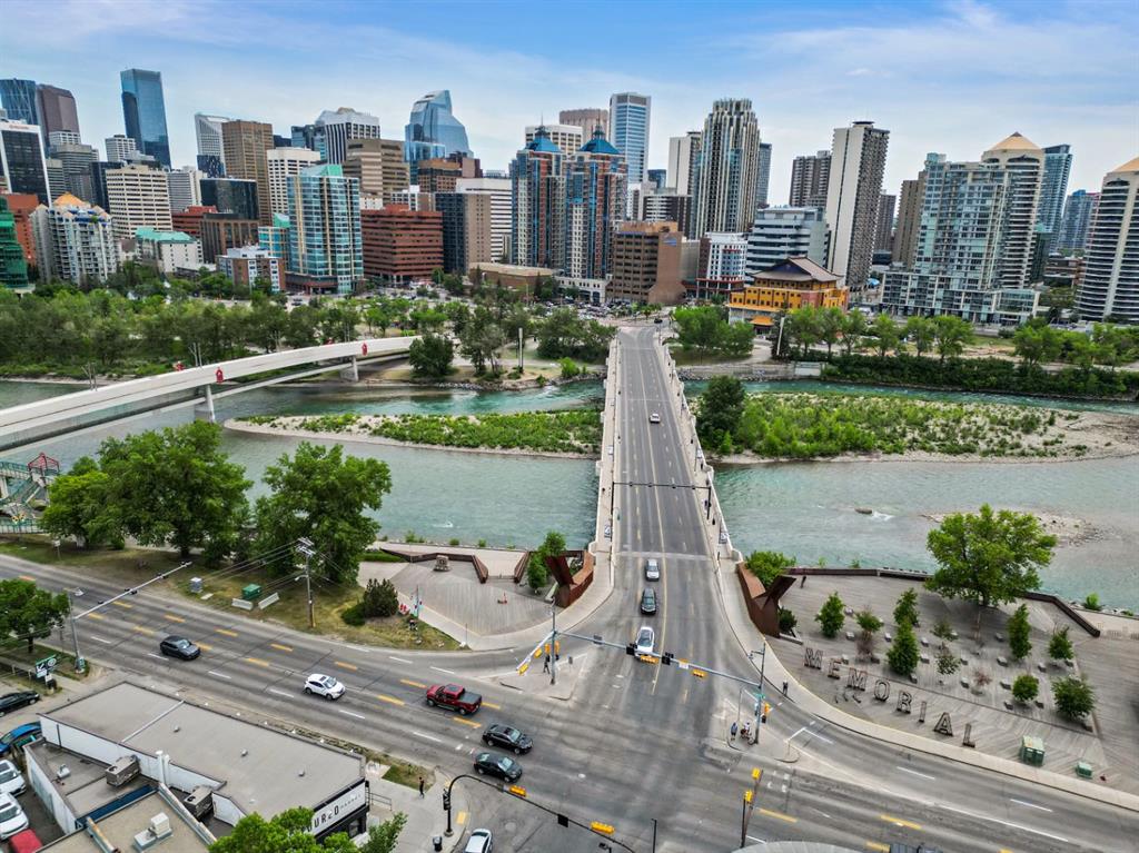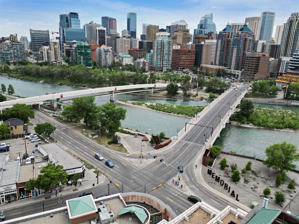 This corner END unit showcases fantastic CITY SKYLINE VIEWS and must be seen. Very close to the downtown core in the heart of Hillhurst, and walking distance to the pubs, restaurants, and shops of Kensington. Stroll to the walking paths along the Bow River, beautiful Riley Park, and the Sunnyside LRT station and even up the hill to SAIT! In a concrete building, this 1-bedroom condo features a kitchen perfect for entertaining with eating bar, stainless steel appliances, granite countertops, mosaic tile backs...