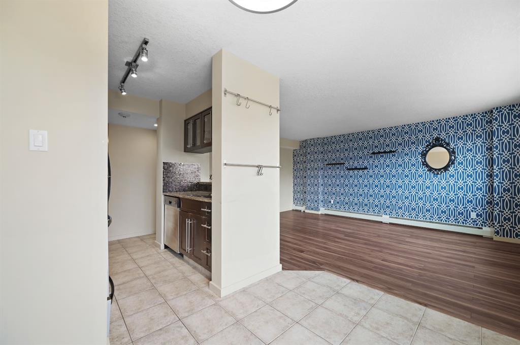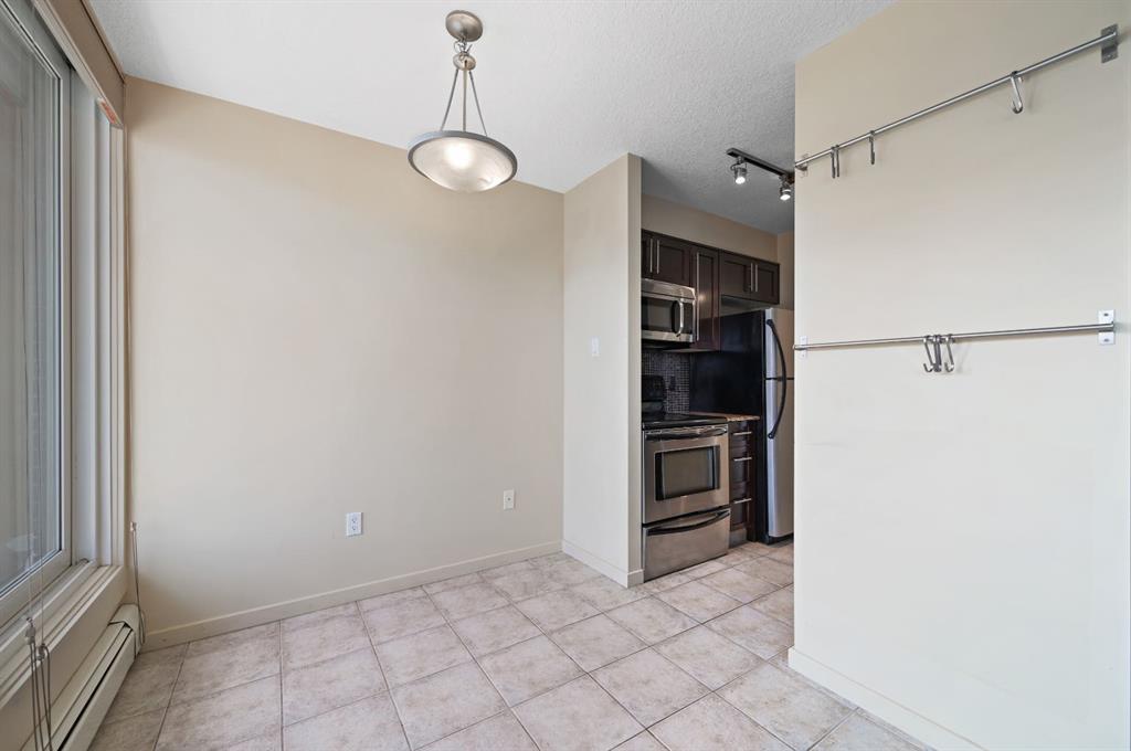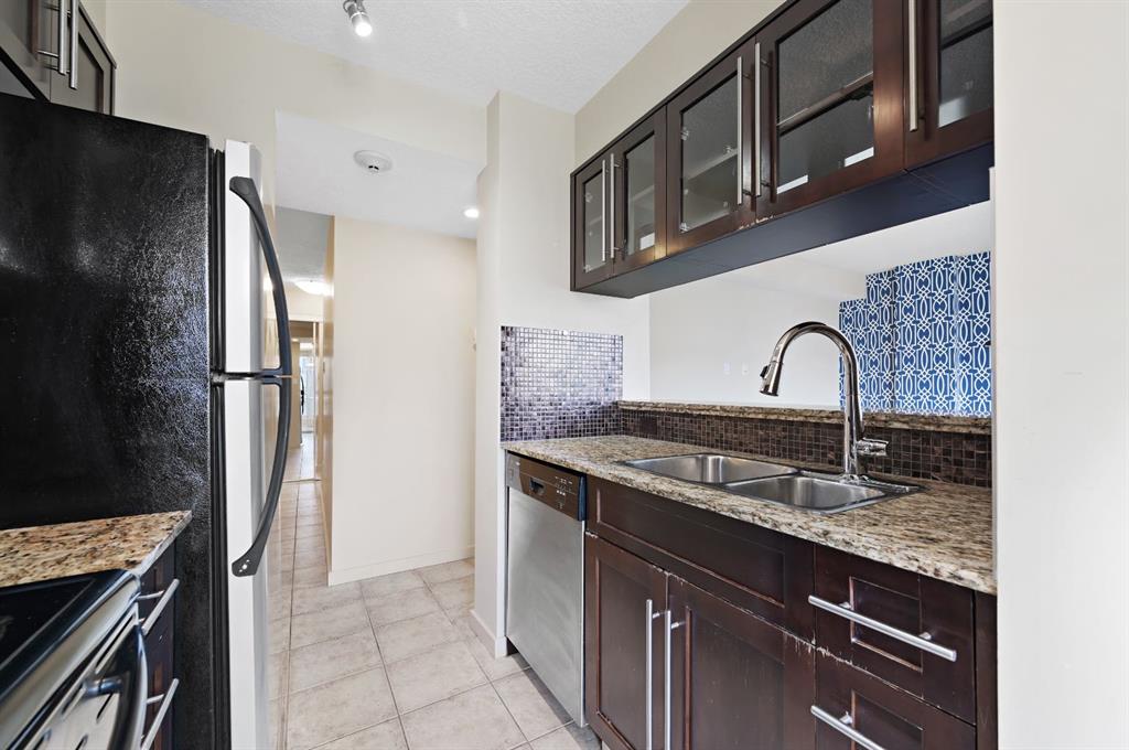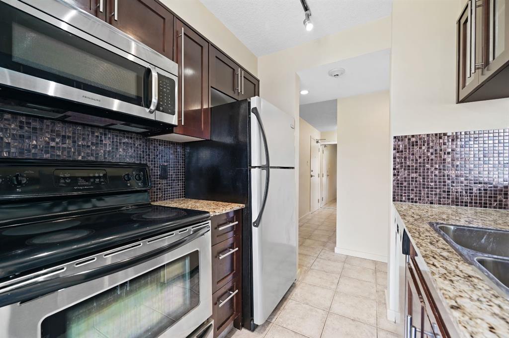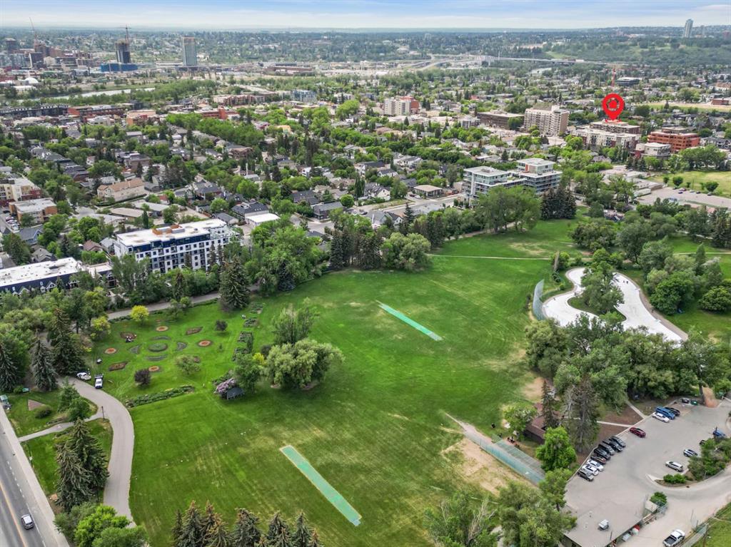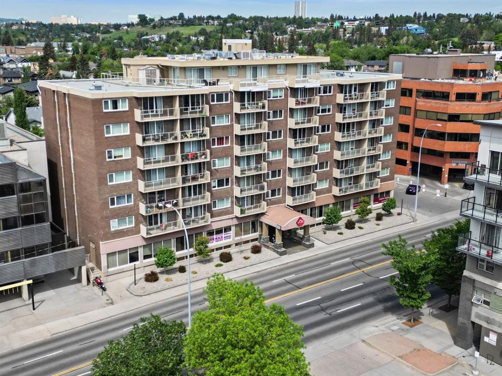 This corner END unit showcases fantastic CITY SKYLINE VIEWS and must be seen. Very close to the downtown core in the heart of Hillhurst, and walking distance to the pubs, restaurants, and shops of Kensington. Stroll to the walking paths along the Bow River, beautiful Riley Park, and the Sunnyside LRT station and even up the hill to SAIT! In a concrete building, this 1-bedroom condo features a kitchen perfect for entertaining with eating bar, stainless steel appliances, granite countertops, mosaic tile backs...