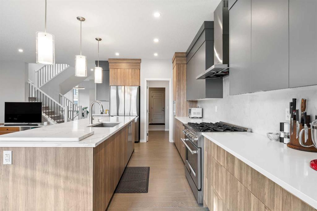Welcome to this thoughtfully crafted home in the desirable community of Harvest Hills, perfectly positioned on a CORNER LOT offering added privacy, great curb appeal, and abundant natural light. This beautifully upgraded 3-bedroom, 2.5-bathroom home features an open-concept main floor ideal for everyday living and entertaining. Highlights include ENGINEERED HARDWOOD FLOORS, soaring ceilings, oversized windows, WiFi-ready smart features, upgraded LED lighting, UPGRADE QUARTZ COUNTERTOPS, and sleek modern fi...