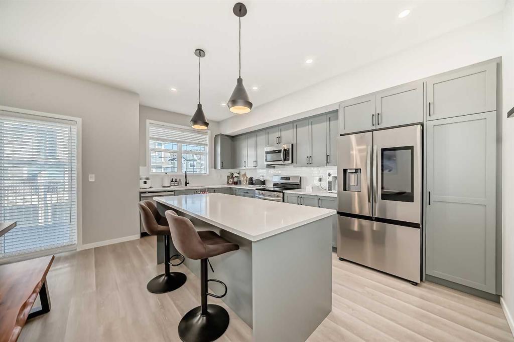 Welcome to this beautifully upgraded 2024-built townhome in the desirable community of Copperfield, offering over 2,000 sq. ft. of modern living space with a double attached garage. This bright and spacious 3-bedroom, 2.5-bath home features an open-concept main floor with large corner windows that fill the space with natural light. The gourmet kitchen includes quartz countertops, cabinetry, a large island, and an electric stove, perfect for both everyday living and entertaining. The living room is highlight...