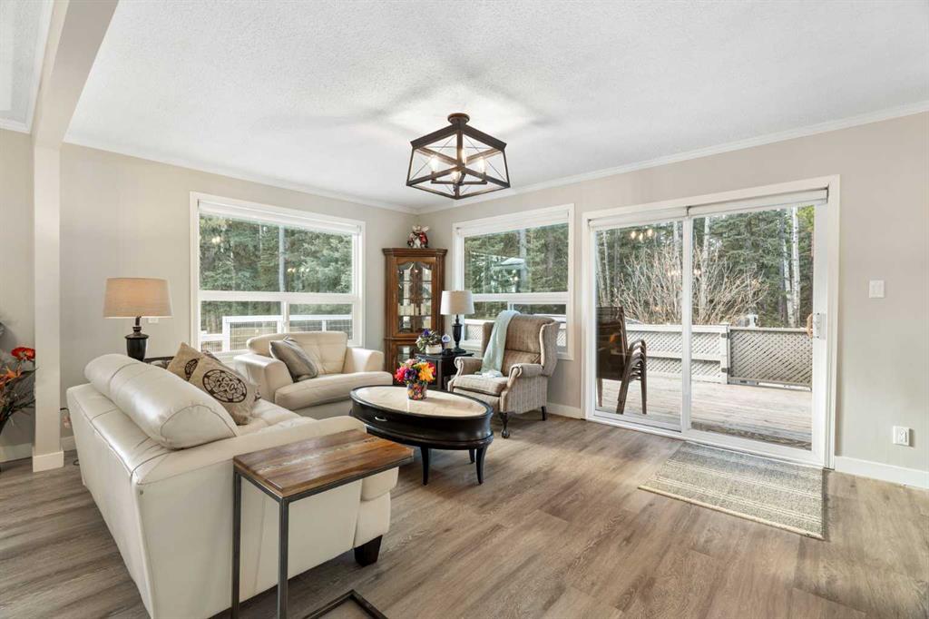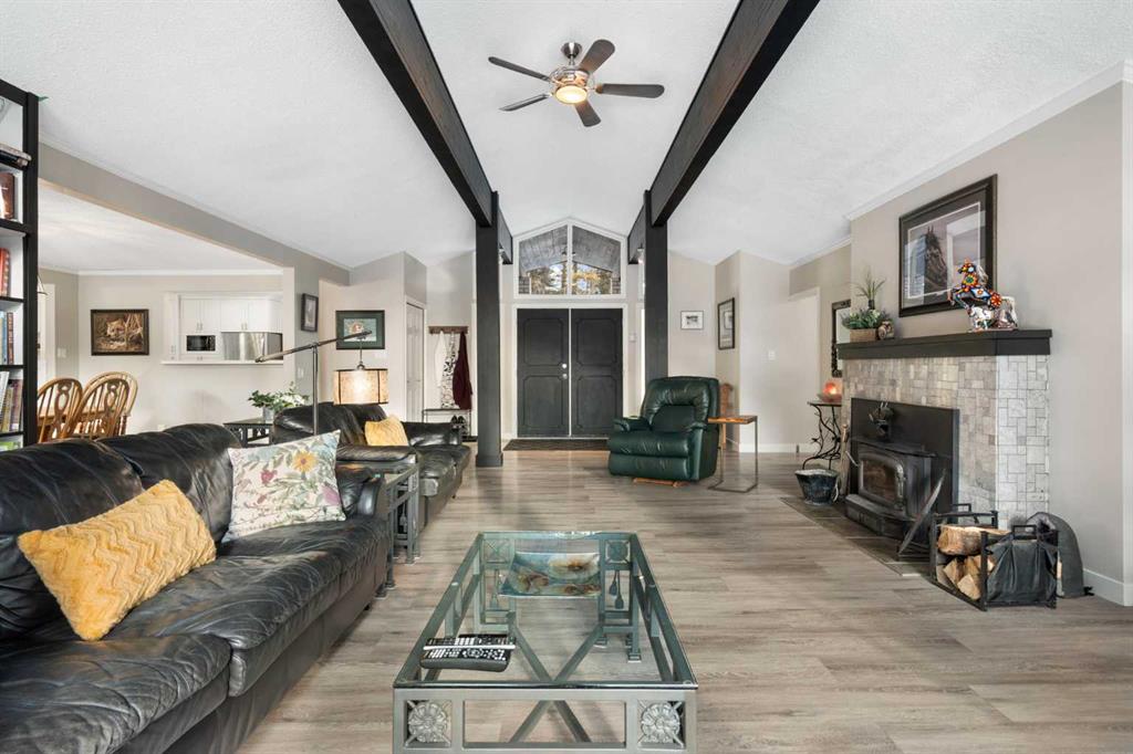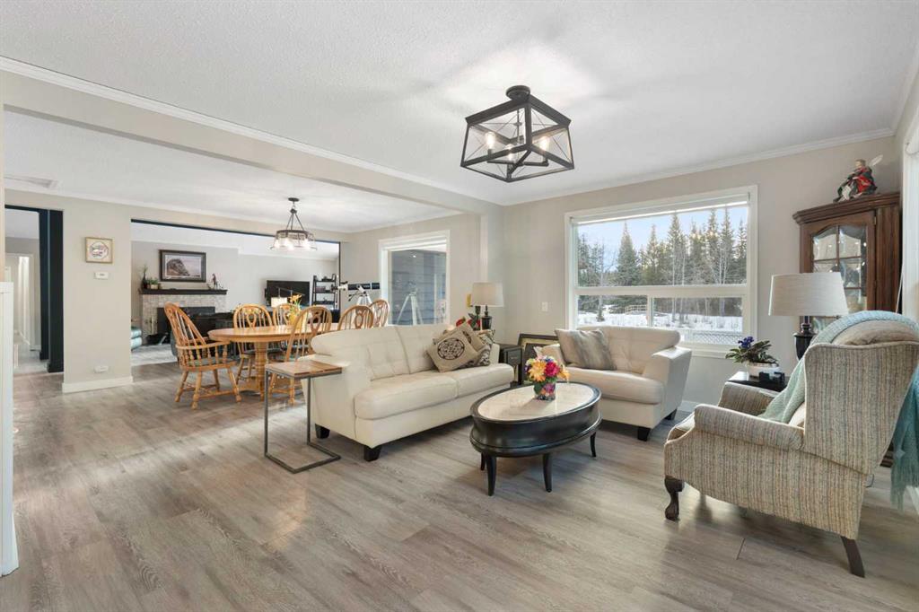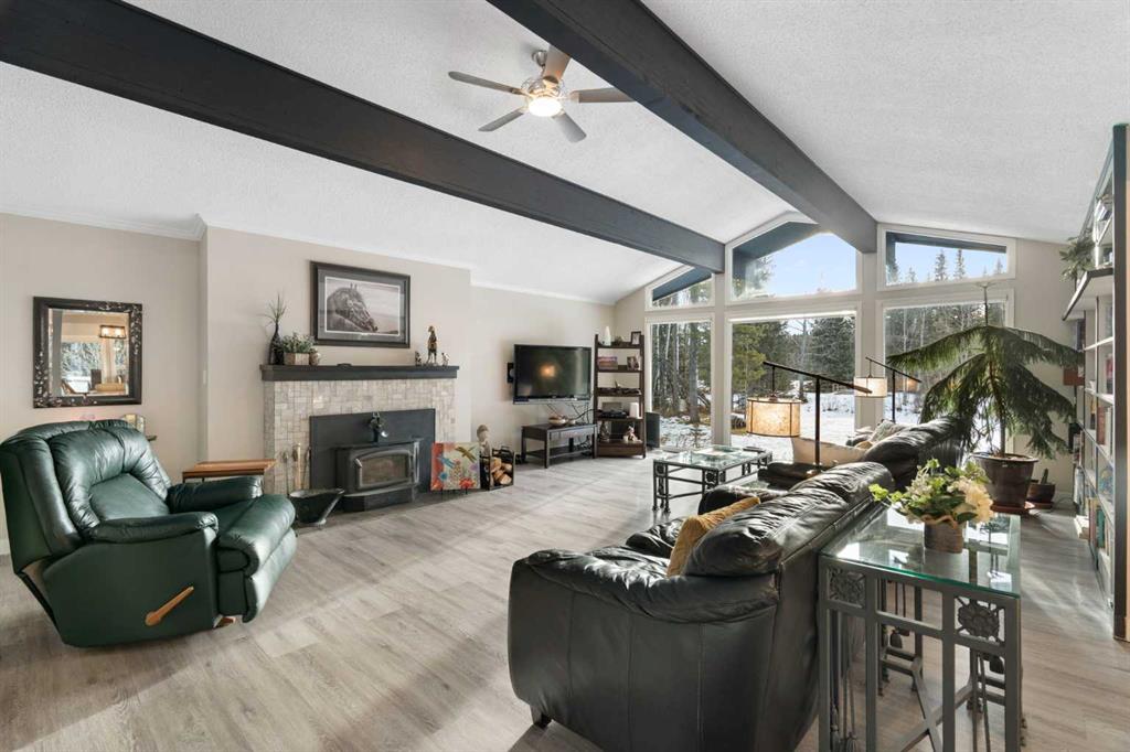 Set on a private and beautifully treed 4-acre estate parcel in West Bragg Creek, this exceptional property offers a rare blend of refined country living, modern comfort, and equestrian capability—just 7 minutes to Bragg Creek and within easy reach of Calgary. Boasting approximately 2,400 sq ft above grade, with 762 sq ft in the lower level (plus a crawl space), the home is thoughtfully designed for both elegant entertaining and everyday living. A dramatic Vaulted Family room anchors the residence with soari...