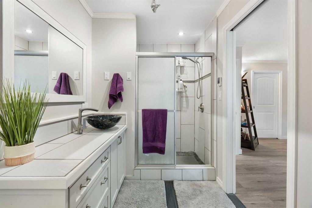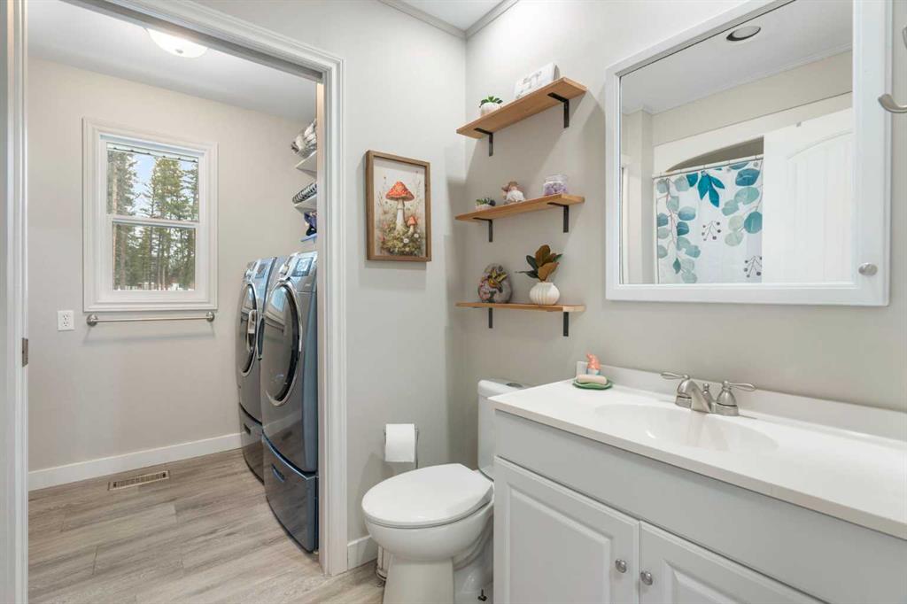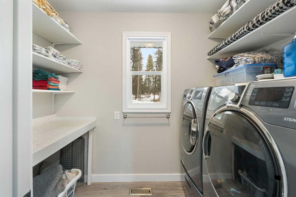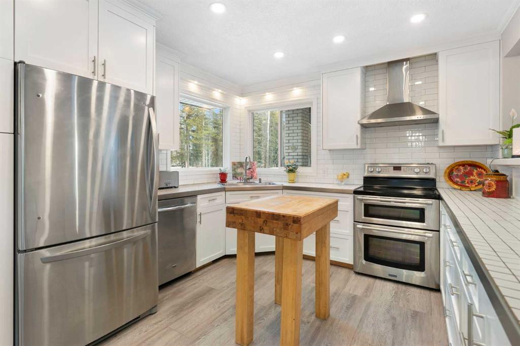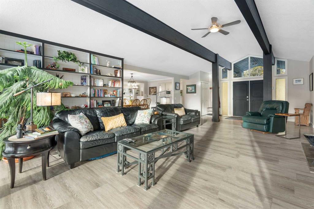 Set on a private and beautifully treed 4-acre estate parcel in West Bragg Creek, this exceptional property offers a rare blend of refined country living, modern comfort, and equestrian capability—just 7 minutes to Bragg Creek and within easy reach of Calgary. Boasting approximately 2,400 sq ft above grade, with 762 sq ft in the lower level (plus a crawl space), the home is thoughtfully designed for both elegant entertaining and everyday living. A dramatic Vaulted Family room anchors the residence with soari...